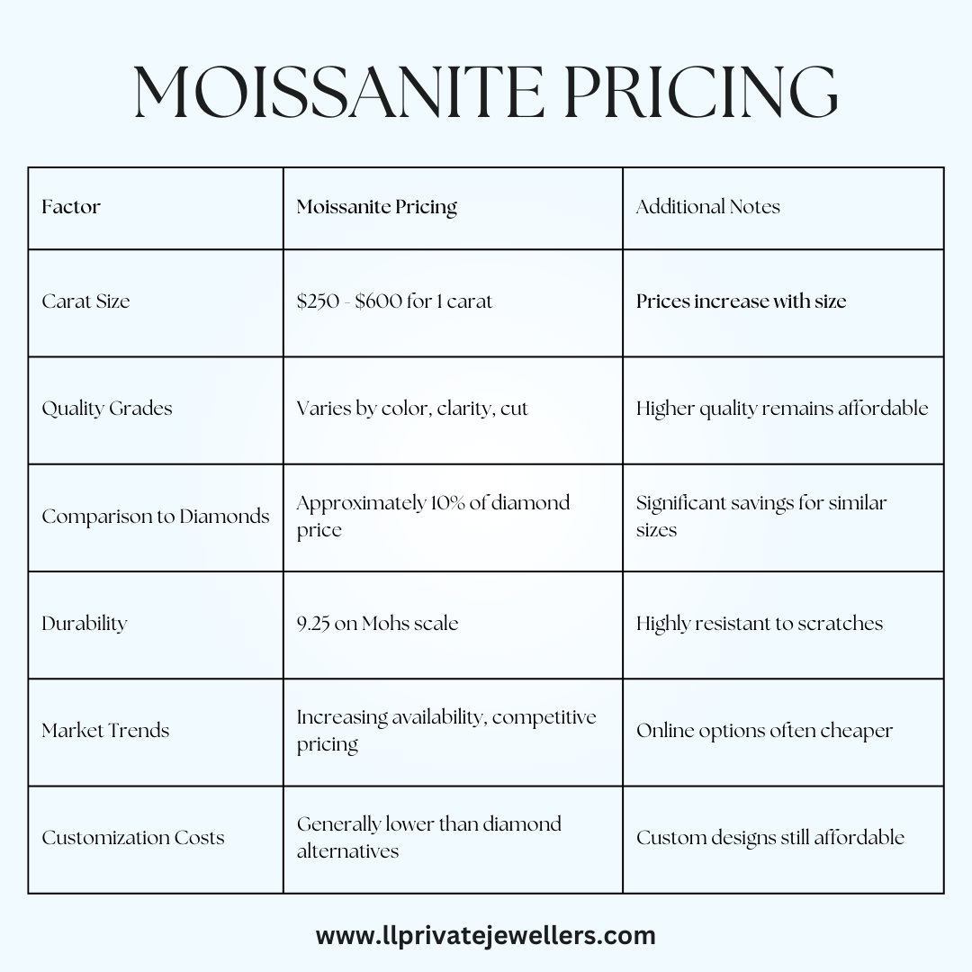 If you have any questions or need further assistance in your search for the perfect moissanite, feel free to reach out LL Private Jewellers.