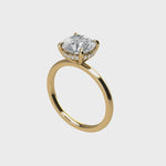 Finely handcrafted round moissanite engagement ring with hidden halo | Available in 14k white gold, 14k yellow gold, 14k rose gold, 18k yellow gold, 19k white gold, and platinum | Proudly made in Vancouver, Canada.